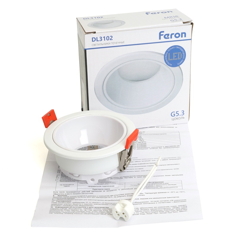 Отзывы о Светильник встраиваемый Feron DL3102 потолочный MR16 G5.3 белый