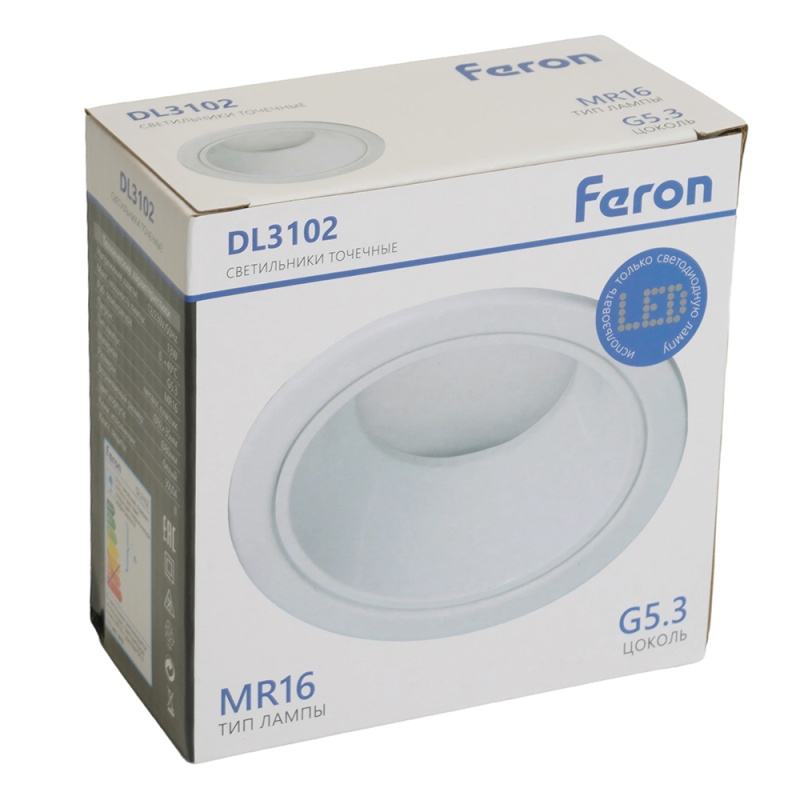 Характеристики Светильник встраиваемый Feron DL3102 потолочный MR16 G5.3 белый