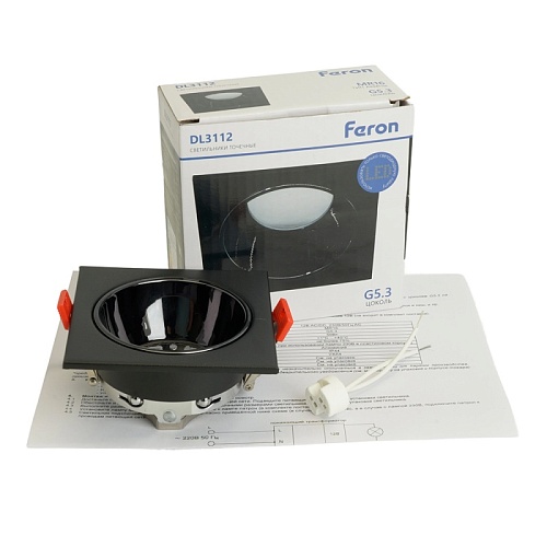 Характеристики Светильник встраиваемый Feron DL3112 потолочный MR16 G5.3 черный + черный хром