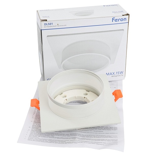 Светильник встраиваемый Feron DL501 потолочный GX53 белый квадрат 51087