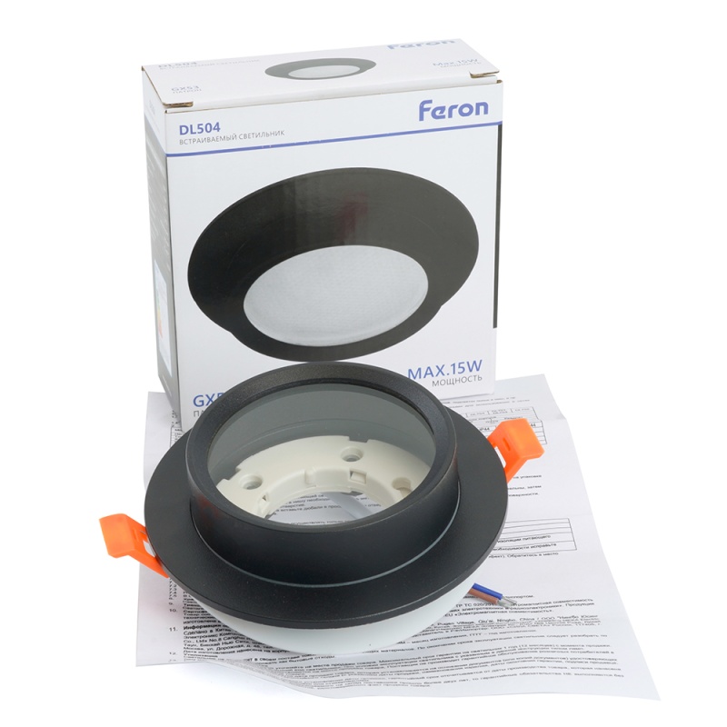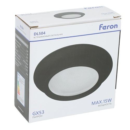Характеристики Светильник встраиваемый Feron DL504 потолочный GX53 черный круг IP44