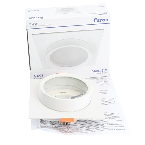 Характеристики Светильник встраиваемый Feron DL505 потолочный GX53 белый квадрат IP44