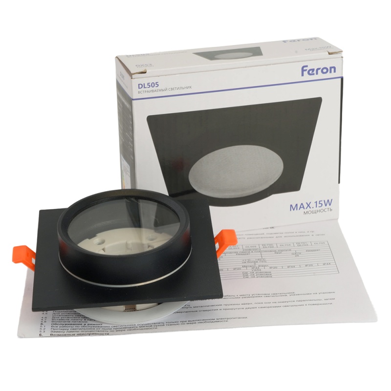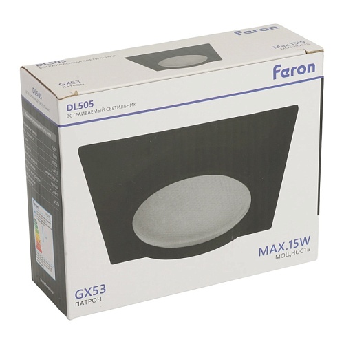 Характеристики Светильник встраиваемый Feron DL505 потолочный GX53 черный квадрат IP44