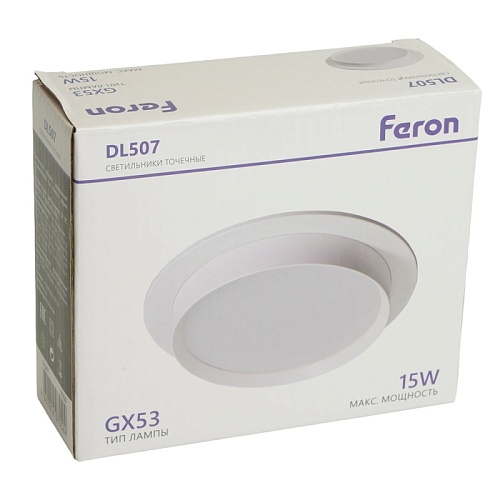 Характеристики Светильник встраиваемый Feron DL507 потолочный GX53 белый круг