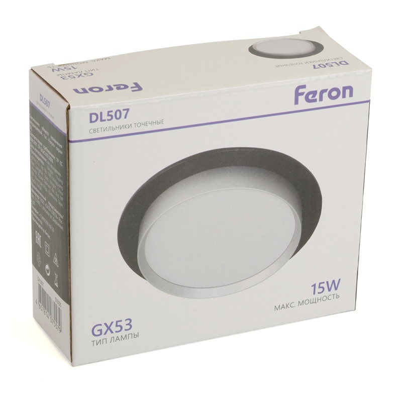 Характеристики Светильник встраиваемый Feron DL507 потолочный GX53 черный + серебро круг