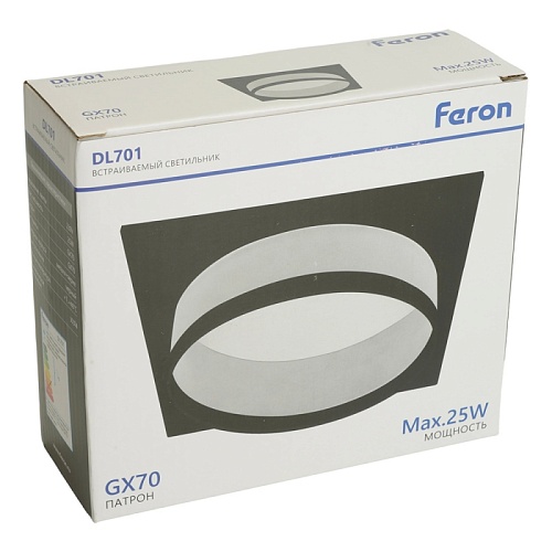 Характеристики Светильник встраиваемый Feron DL701 потолочный GX70 черный квадрат