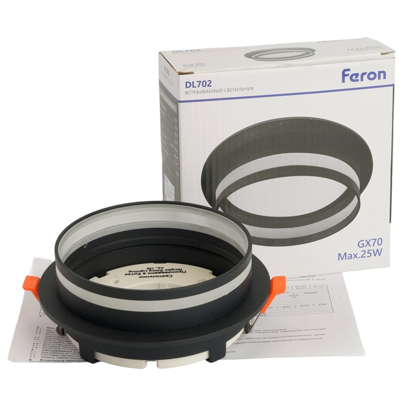 Характеристики Светильник встраиваемый Feron DL702 LUNA потолочный GX70 черный круг