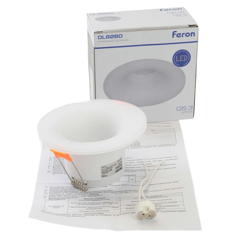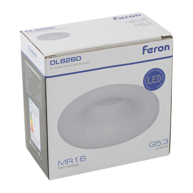 Характеристики Светильник встраиваемый Feron DL8260 потолочный MR16 G5.3 прозрачный, белый