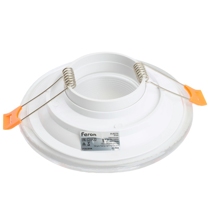 Светильник встраиваемый Feron DL8270 потолочный MR16 G5.3 прозрачный, белый 51151