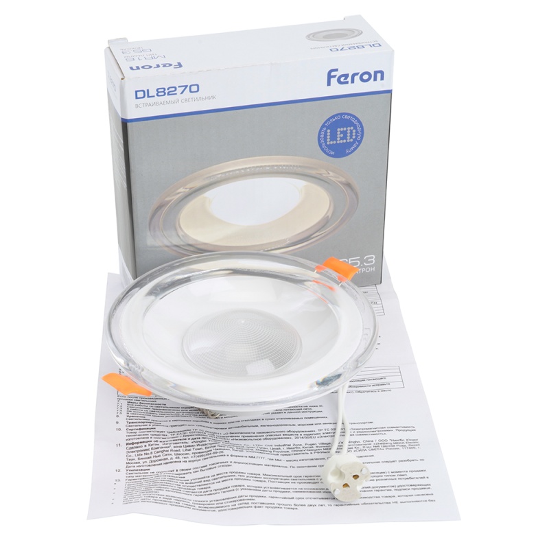 Характеристики Светильник встраиваемый Feron DL8270 потолочный MR16 G5.3 прозрачный, белый