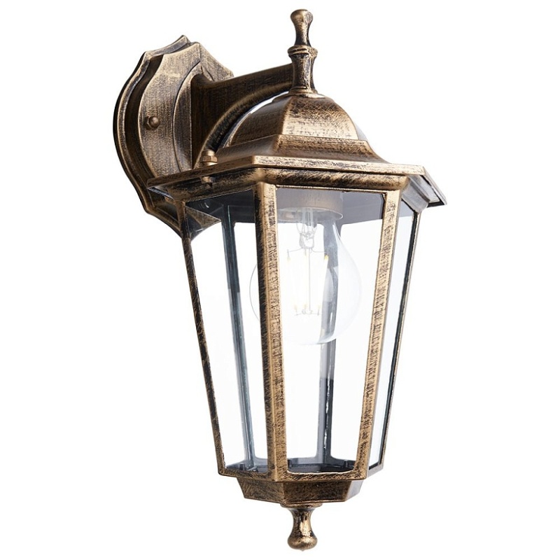 Светильник садово-парковый Feron 6102/PL6102 шестигранный на стену вниз 60W E27 230V, черное золото 11127