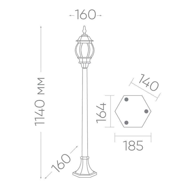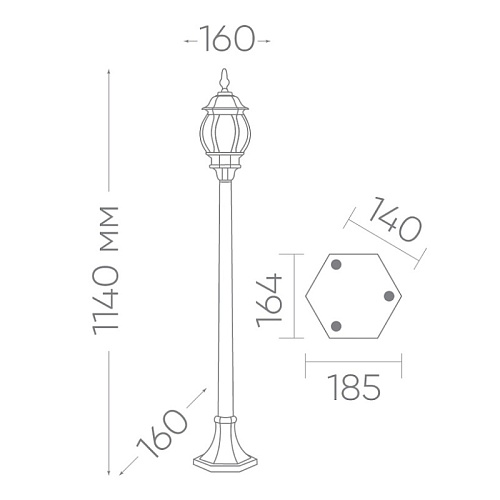 Светильник садово-парковый Feron НТУ 06-60-001 на постамент, 6-ти гранник 60W E27 230V, черный