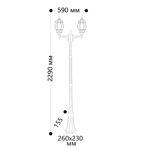 Светильник садово-парковый Feron 8114/PL8114 столб 2*100W E27 230V, черное золото
