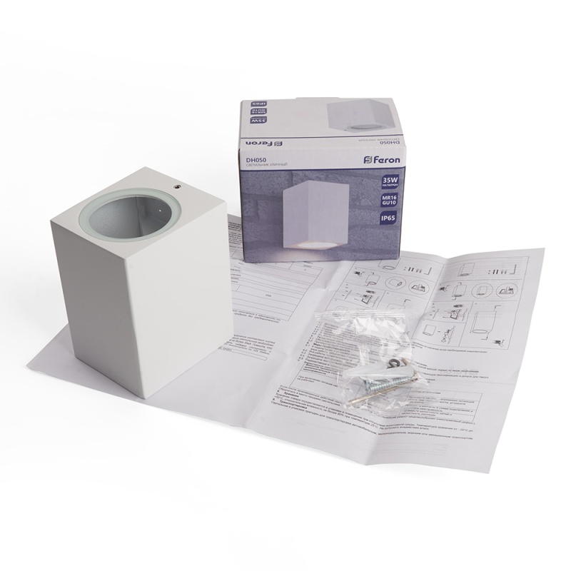 Характеристики Светильник садово-парковый Feron DH050,на стену, GU10 230V, белый