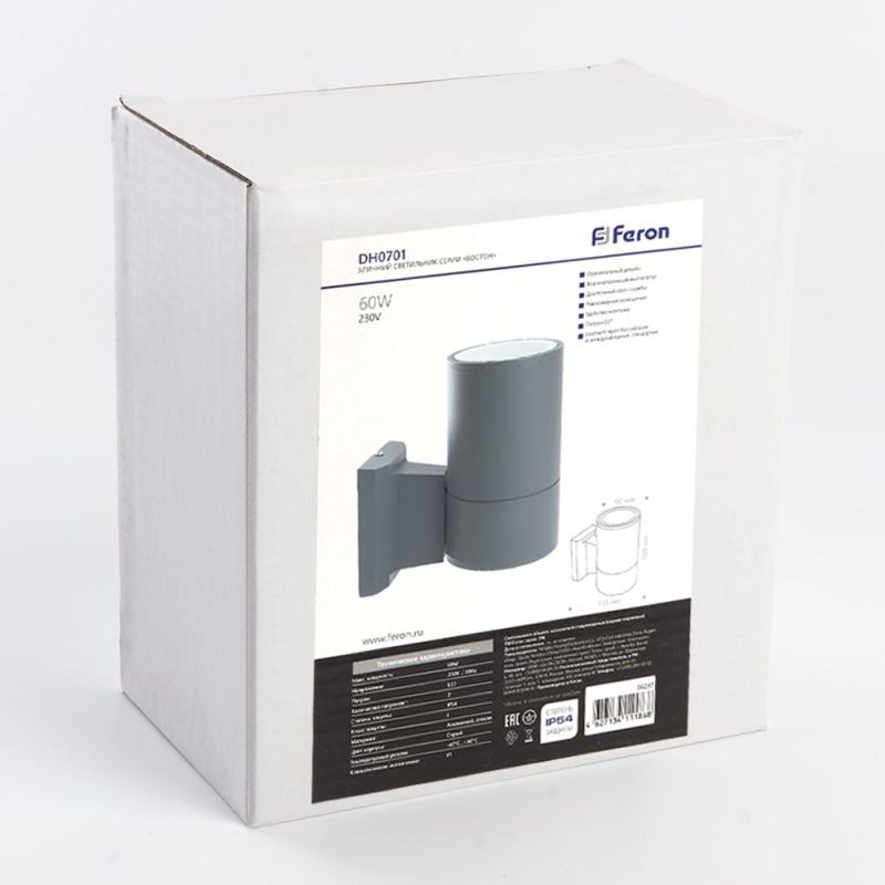 Характеристики Светильник садово-парковый Feron DH0701, на стену вверх, E27 230V, серый