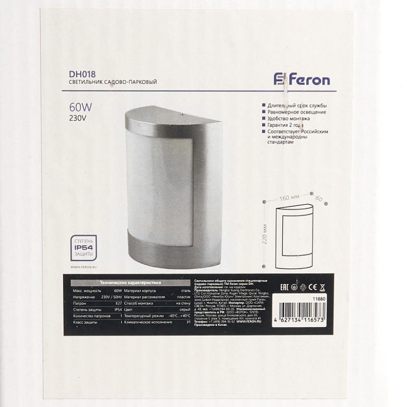 Характеристики Светильник садово-парковый Feron DH0704,на стену, 2*GU10 230V, черный