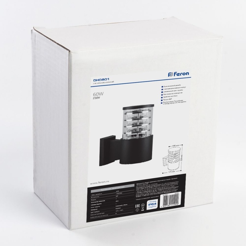 Светильник садово-парковый Feron DH0802, на стену вверх/вниз, E27 230V, черный