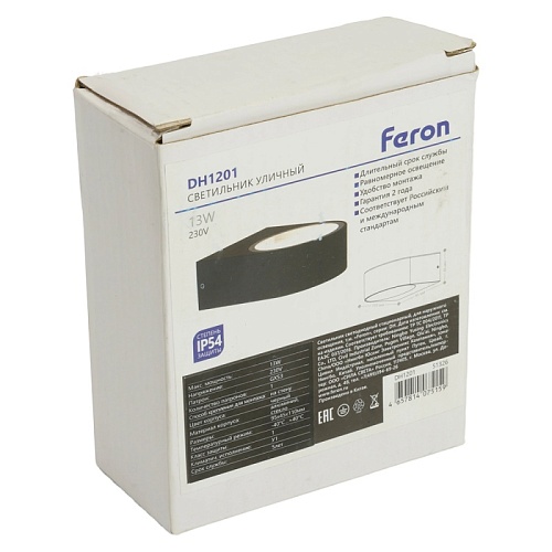 Характеристики Светильник садово-парковый Feron DH1201,на стену, GX53 230V, черный