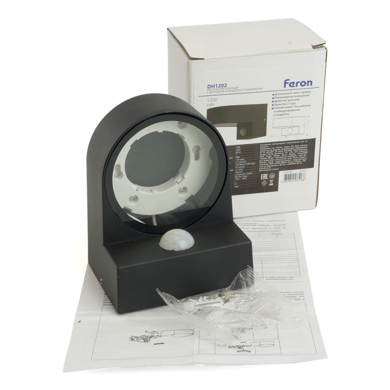 Характеристики Светильник садово-парковый Feron DH1202, с датчиком освещенности/движения (на стену), GX53