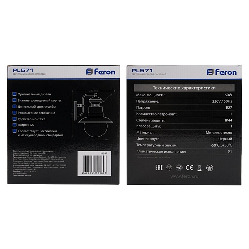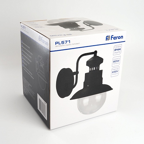 Характеристики Светильник садово-парковый Feron PL571 на стену вниз 60W 230V E27, черный