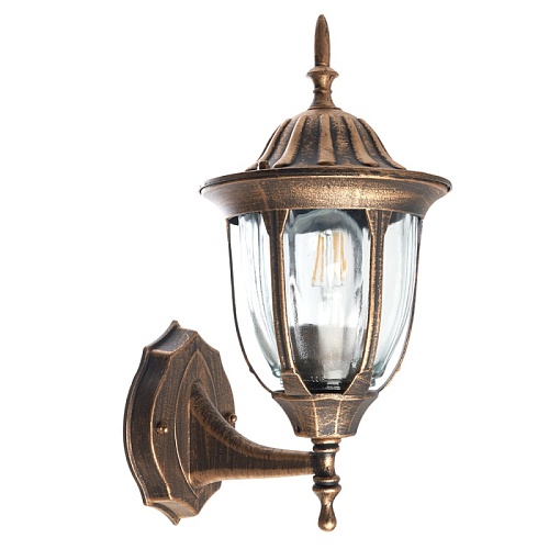 Светильник садово-парковый Feron PL6301 шестигранный на стену вверх 60W E27 230V, черное золото 11897