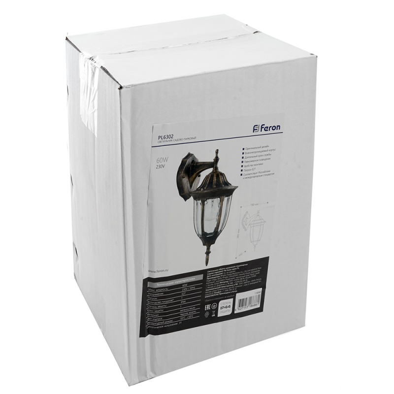 Характеристики Светильник садово-парковый Feron PL6302 шестигранный на стену вниз 60W 230V E27, черное золото