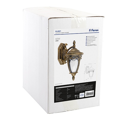 Характеристики Светильник садово-парковый Feron PL681 на стену вниз 60W 230V E27, черное золото