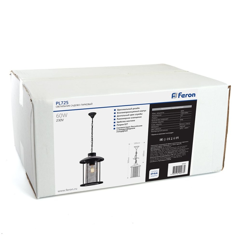 Характеристики Светильник садово-парковый Feron PL725 на цепочке 60W E27 230V, черный