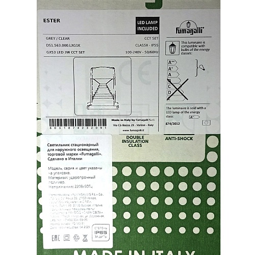 Характеристики Светильник ландшафтный, Fumagalli DS1.561.000.LXG1K, 3W 230V GX53 серый