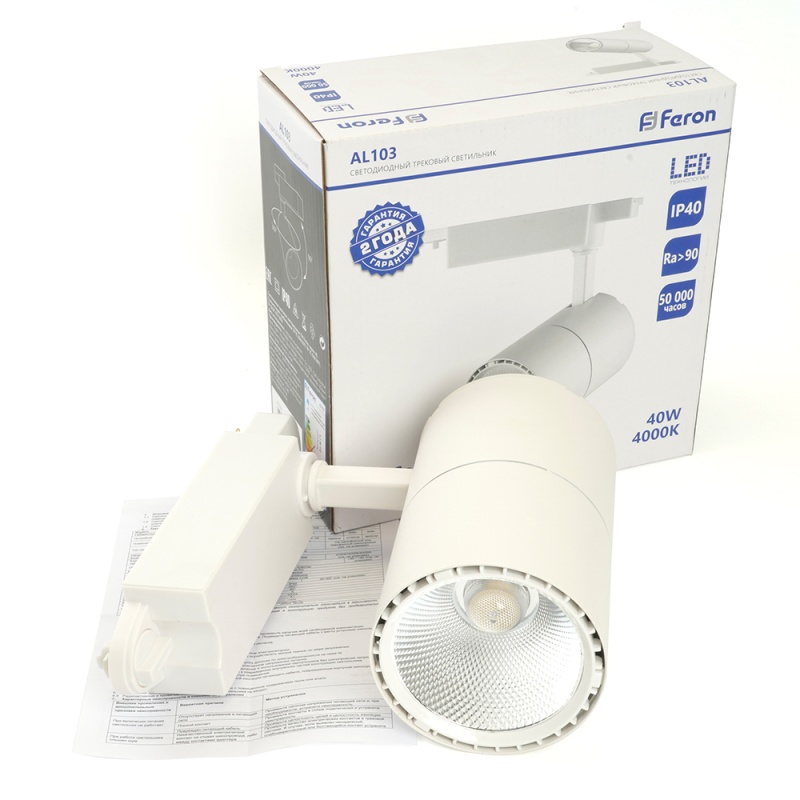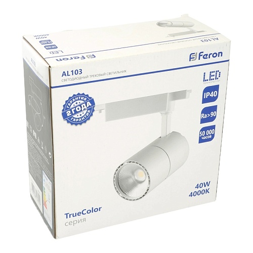 Характеристики Светодиодный светильник Feron AL103 трековый однофазный на шинопровод 40W 4000K, 35 градусов, белый с индексом цветопередачи >90Ra серия TrueColor