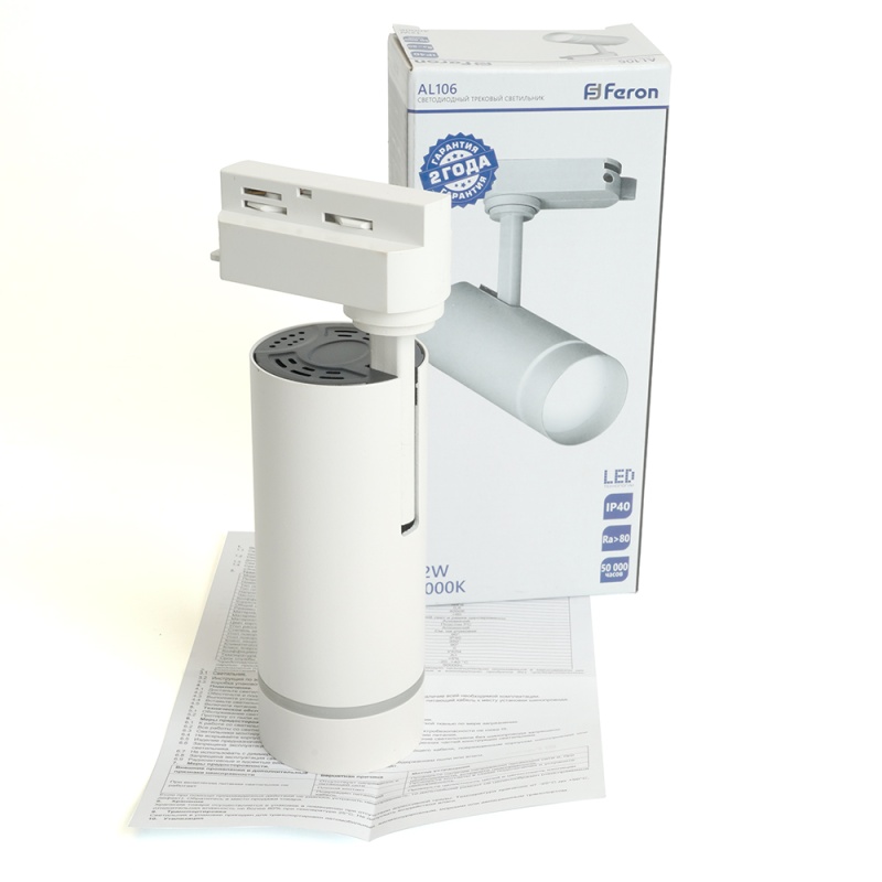 Светодиодный светильник Feron AL106 трековый однофазный на шинопровод 12W 4000K 80 градусов белый 32444