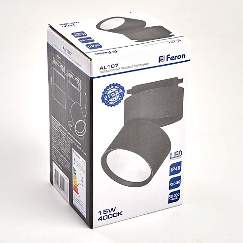 Характеристики Светодиодный светильник Feron AL107 трековый однофазный на шинопровод 15W, 90 градусов, 4000К, черный
