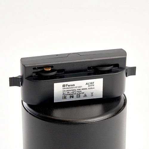 Светодиодный светильник Feron AL107 трековый однофазный на шинопровод 15W, 90 градусов, 4000К, черный 32476