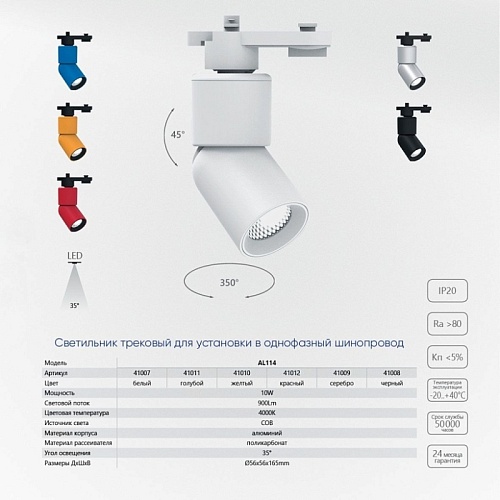 Характеристики Светильник трековый на шинопровод FERON AL114 41008
