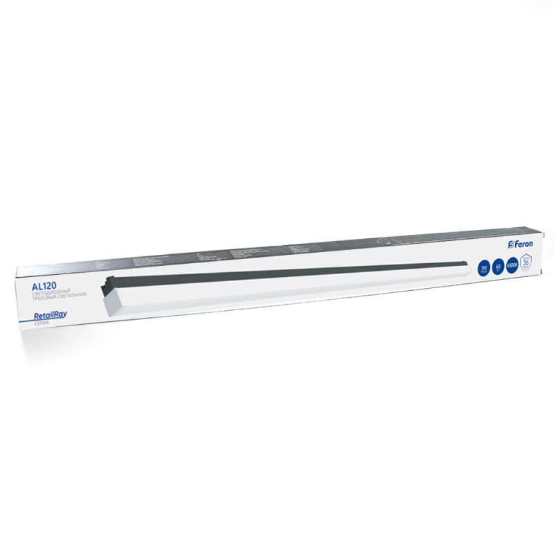 Характеристики Светодиодный светильник Feron AL120 трековый однофазный на шинопровод 60W 6500K 160 градусов черный