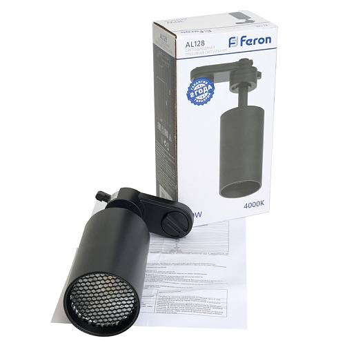 Характеристики Светодиодный светильник Feron AL128 трековый однофазный на шинопровод 10W 4000K 35 градусов черный