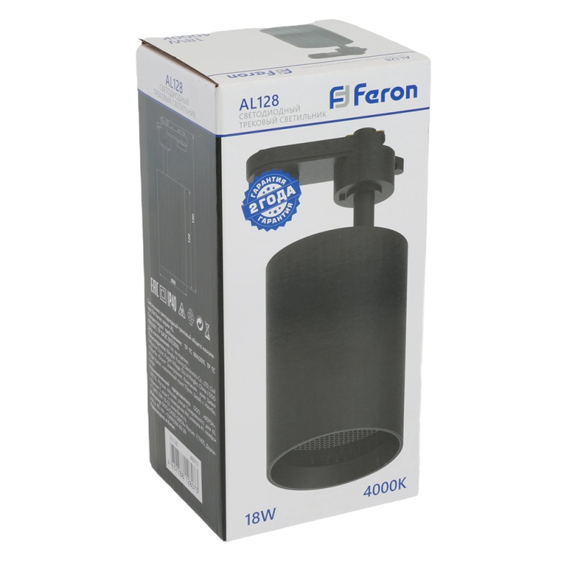 Характеристики Светодиодный светильник Feron AL128 трековый однофазный на шинопровод 18W 4000K 35 градусов черный