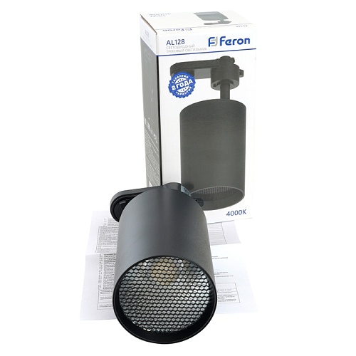 Светодиодный светильник Feron AL128 трековый однофазный на шинопровод 18W 4000K 35 градусов черный 48919