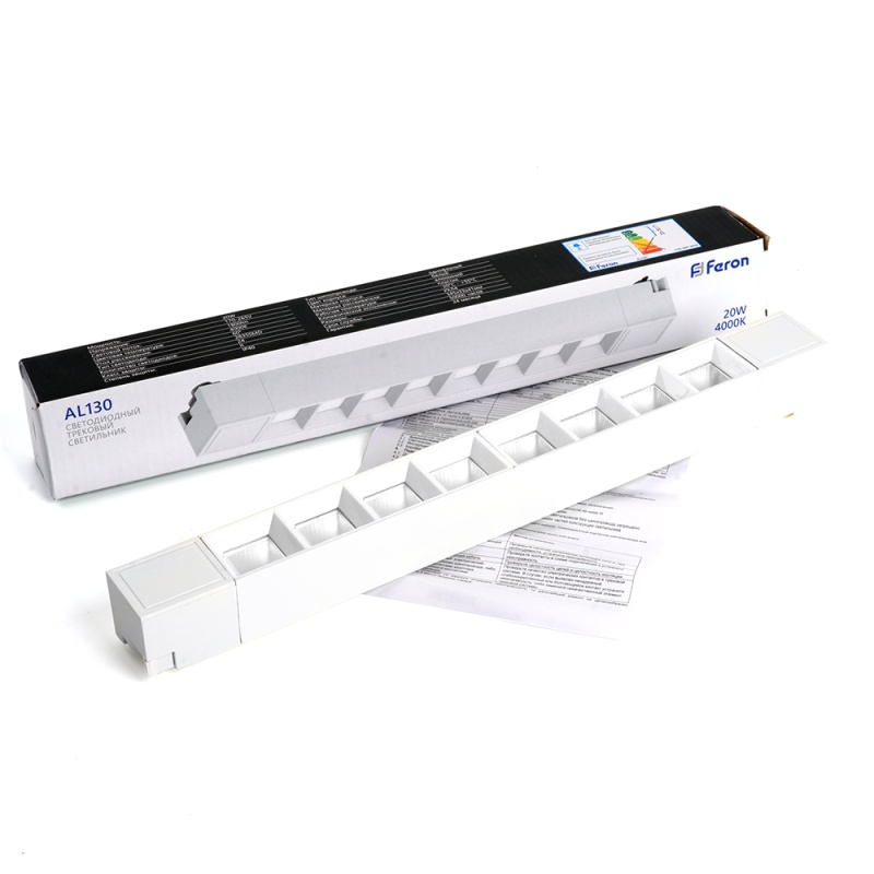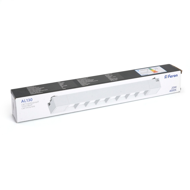 Характеристики Светодиодный светильник Feron AL130 трековый однофазный на шинопровод 20W 4000K 60 градусов белый серия LensLine