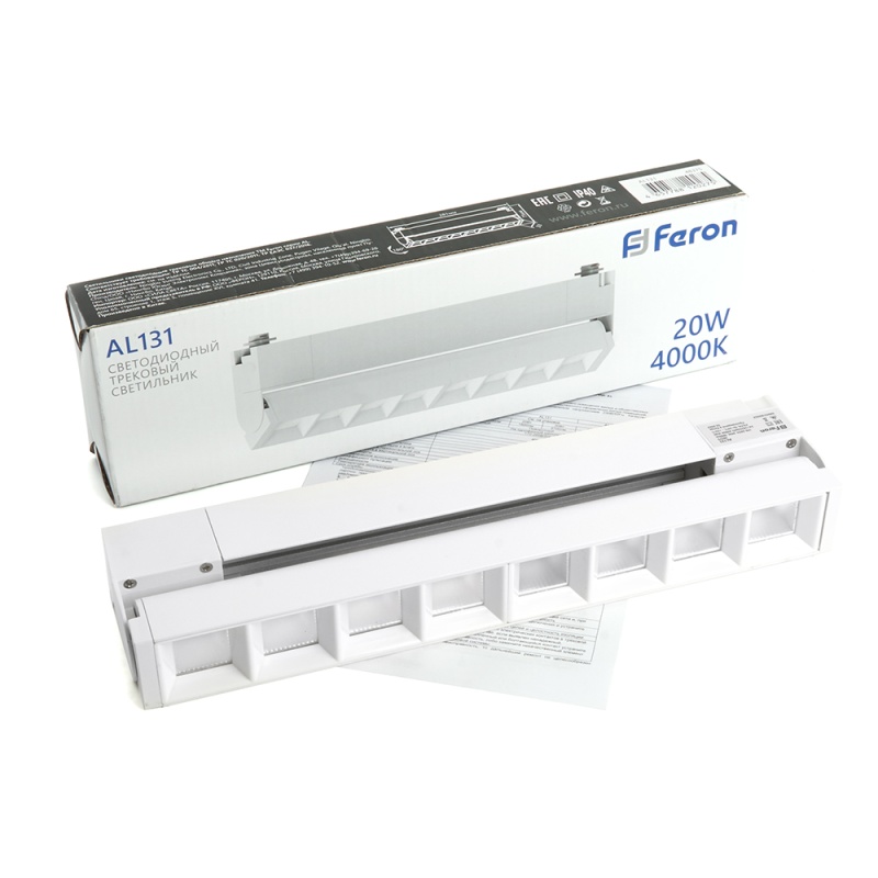 Характеристики Светодиодный светильник Feron AL131 трековый однофазный на шинопровод 20W 4000K 60 градусов белый серия LensFold