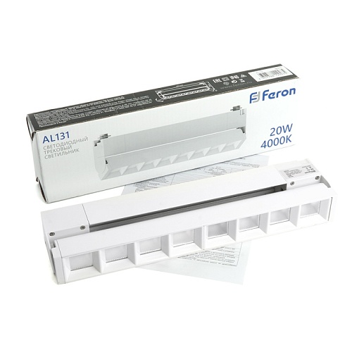 Светодиодный светильник Feron AL131 трековый однофазный на шинопровод 20W 4000K 60 градусов белый серия LensFold 48375