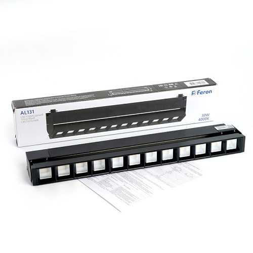Характеристики Светодиодный светильник Feron AL131 трековый однофазный на шинопровод 30W 4000K 60 градусов черный серия LensFold