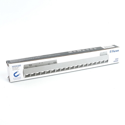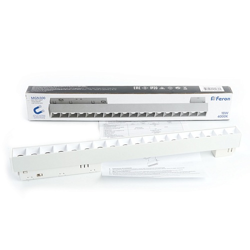 Характеристики Светильник светодиодный Feron MGN300 трековый низковольтный 18W, 1620 Lm, 4000К, 30 градусов, белый серия LensLine