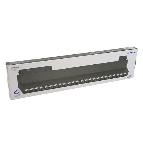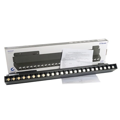 Характеристики Светильник светодиодный Feron MGN301 трековый низковольтный 24W, 2160 Lm, 4000К, 30 градусов, черный серия LensFold