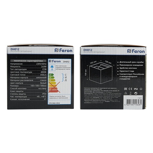 Характеристики Светильник уличный светодиодный Feron DH012, 2*3W, 450Lm, 4000K, белый