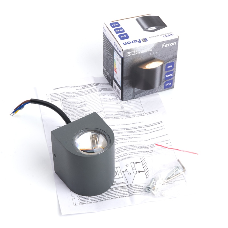 Характеристики Светильник уличный светодиодный Feron DH052, 6W, 400Lm, 3000K, серый