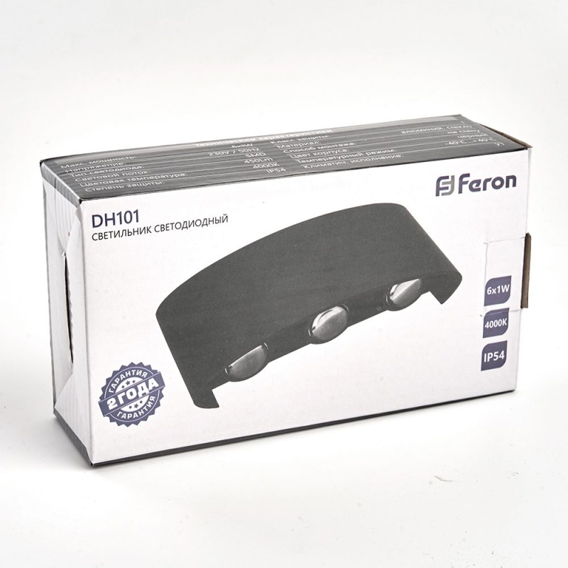 Характеристики Светильник уличный светодиодный Feron DH101, 6*1W, 450Lm, 4000K, черный