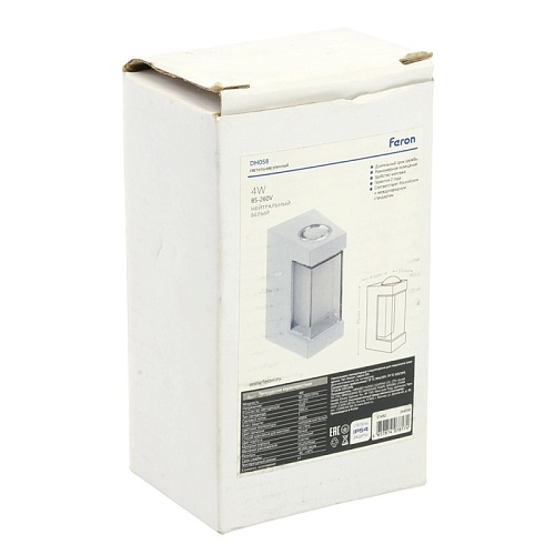Характеристики Светильник уличный светодиодный Feron DH058, 4W, 380Lm, 4000K, белый