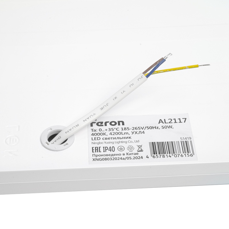Светодиодная панель Feron AL2117 встраиваемая Армстронг 50W 4000K белый ЭПРА в комплекте 51419
