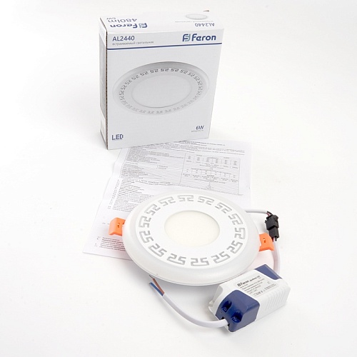 Характеристики Светодиодный светильник Feron AL2440 встраиваемый 6W 4000K и подсветка 4000К белый
